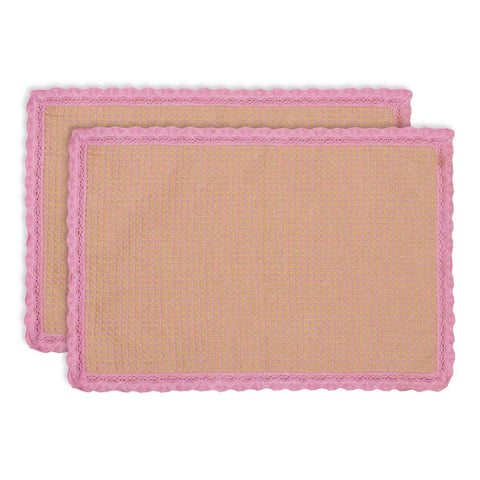 Dusky Rose Waffle Table Placemats with Lace Border (Set of 6)