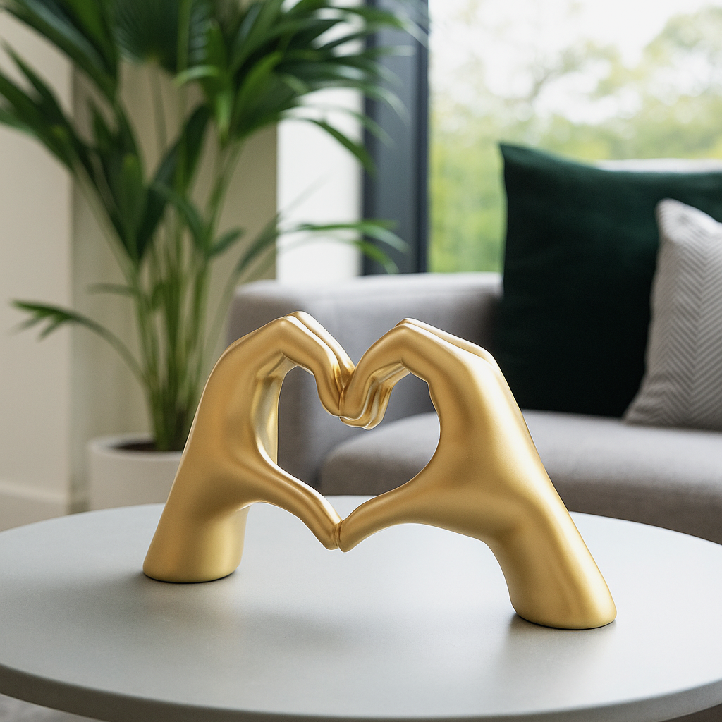 Celebrate love and connection with our Eterna Hands sculpture, a timeless symbol of unity and harmony. Available in both gold and black finishes, this elegant decor piece adds a touch of sophistication to any space. Whether displayed on a shelf, mantel, or tabletop, its beautifully crafted design serves as a perfect reminder of everlasting bonds and heartfelt emotions