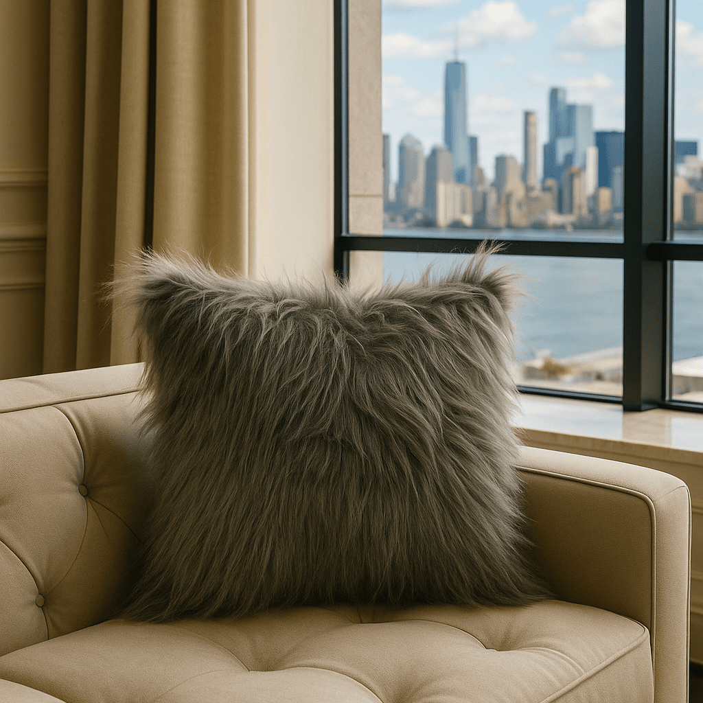 Add warmth and texture to your space with the Graphite Glow cushion cover. Designed for those who love modern elegance, this soft faux fur cover in a sophisticated gray hue creates a cozy yet refined aesthetic. Its plush feel and timeless color make it a versatile addition to any setting, from contemporary living rooms to stylish bedrooms. Pair it with neutral tones for a minimalist look or layer with bold accents for a striking contrast. Perfect for creating a snug and inviting atmosphere in your home.