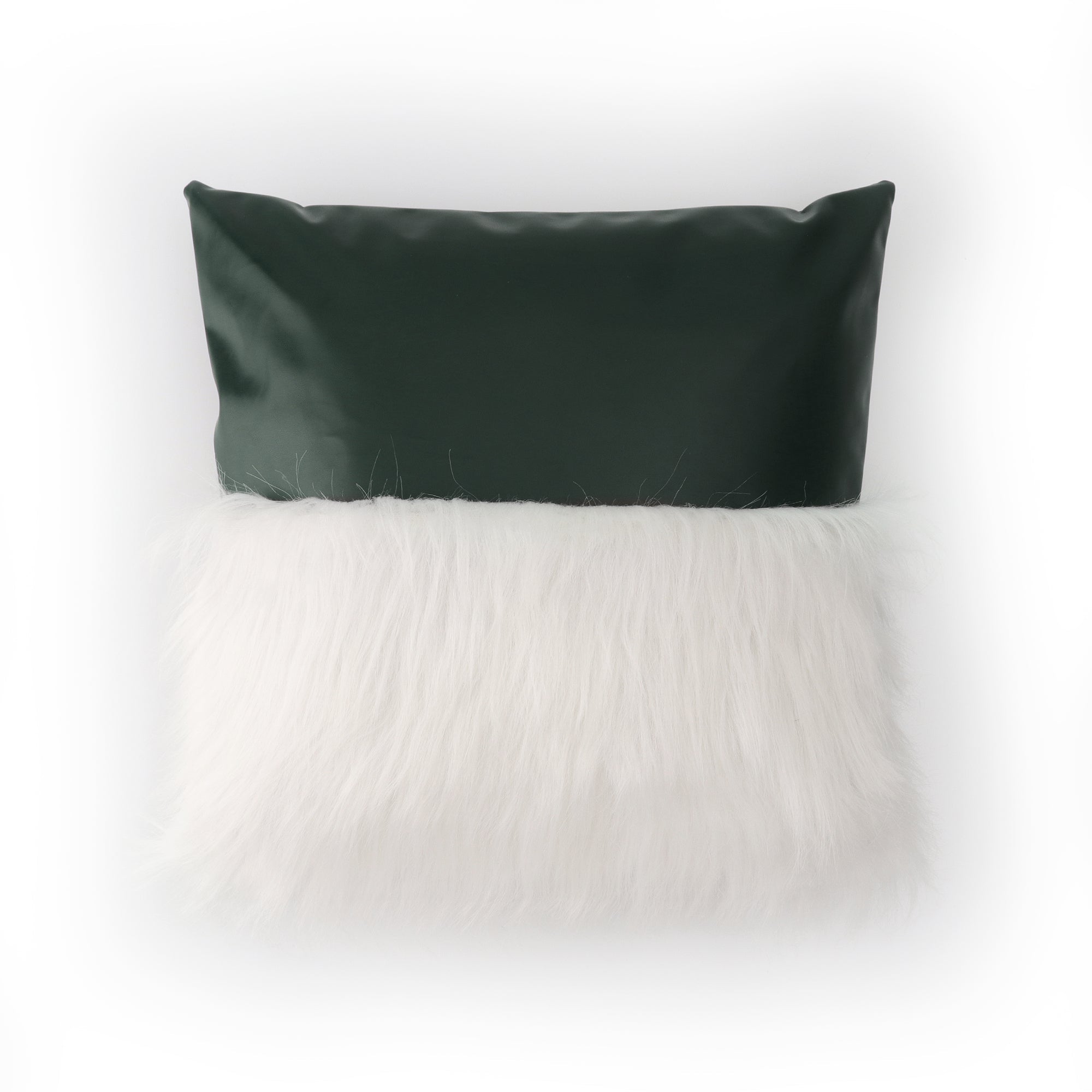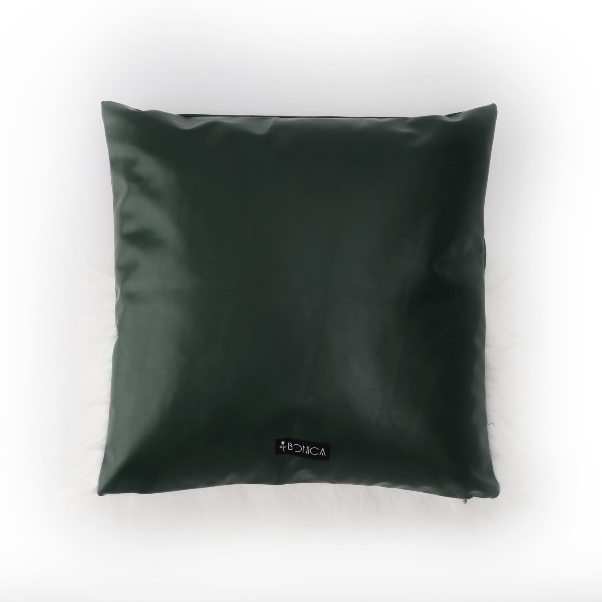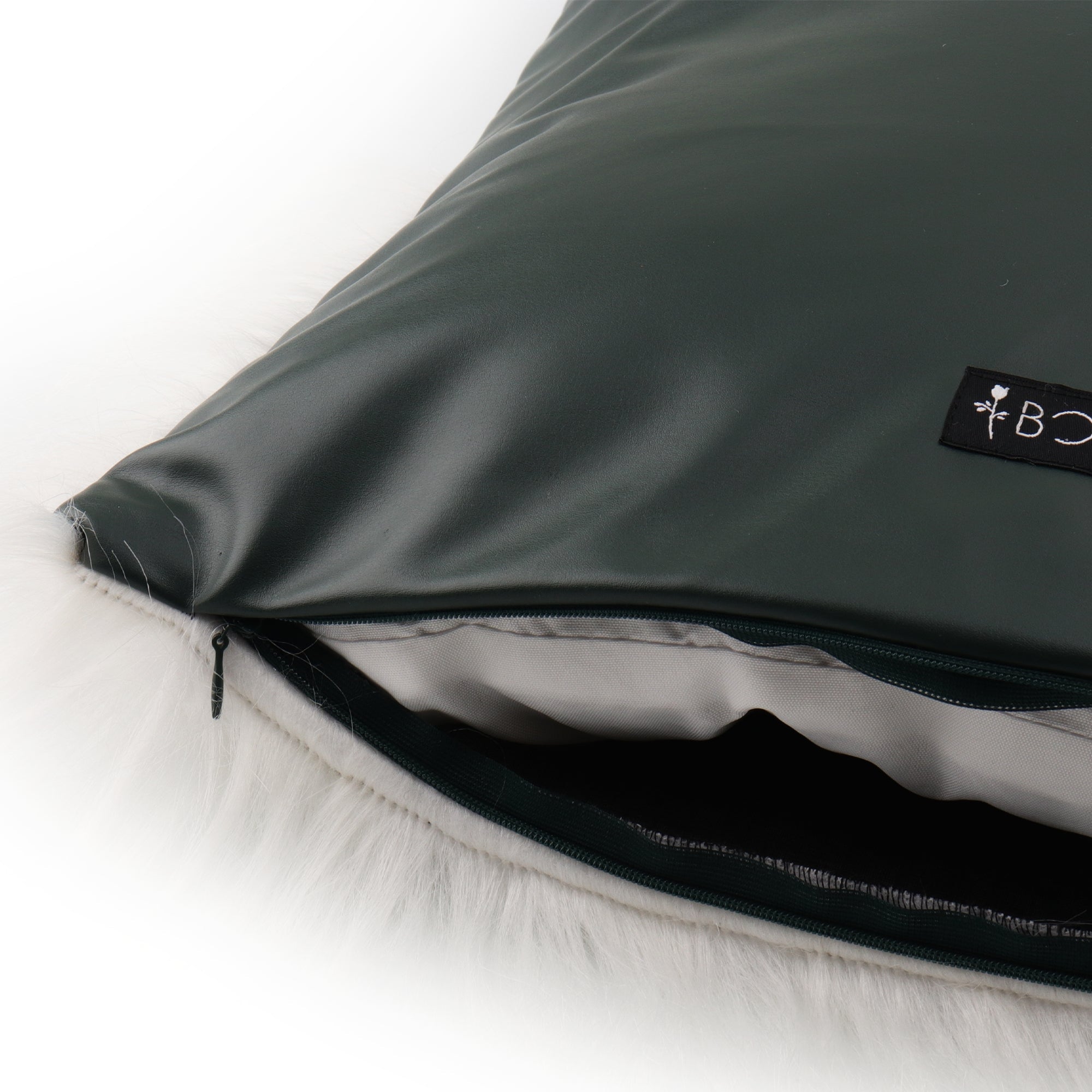 Add a touch of modern sophistication to your space with the Luxe Fusion cushion cover, designed to impress with its bold contrast and luxurious textures. Featuring a sleek bottle green leather top and ultra-soft faux fur bottom, this cushion cover is the perfect balance of contemporary elegance and cozy comfort. Whether styled on a sofa, bed, or accent chair, it instantly becomes a statement piece in your décor.