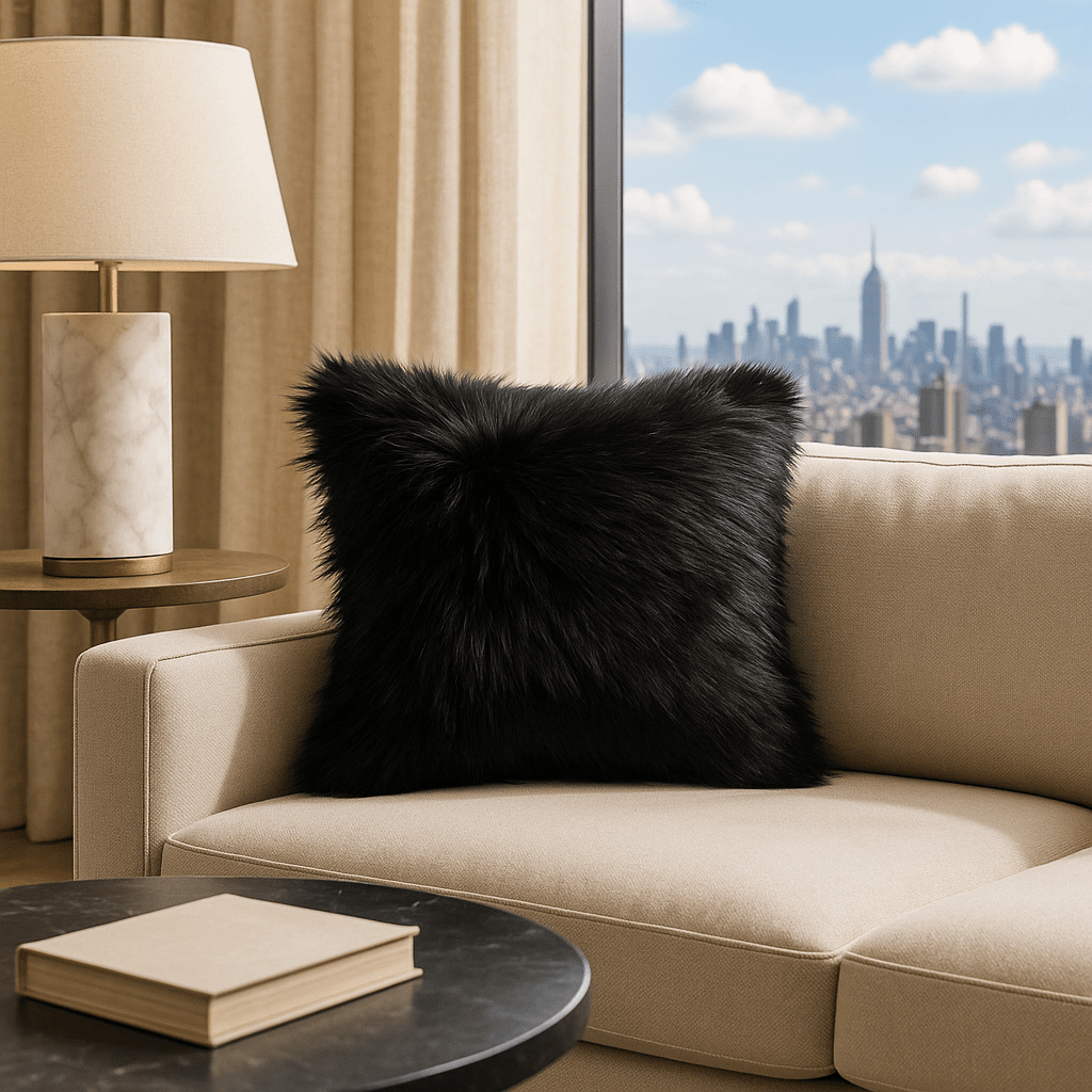 Add a touch of luxury to your home with our Midnight Luxe Black Fur Cushion Cover. Crafted from ultra-soft faux fur, it features a deep, rich black hue that brings both warmth and elegance to any room. From contemporary living rooms to stylish bedrooms. Pair it with neutral tones for a minimalist look or layer with bold accents for a striking contrast. Perfect for creating a snug and inviting atmosphere in your home.