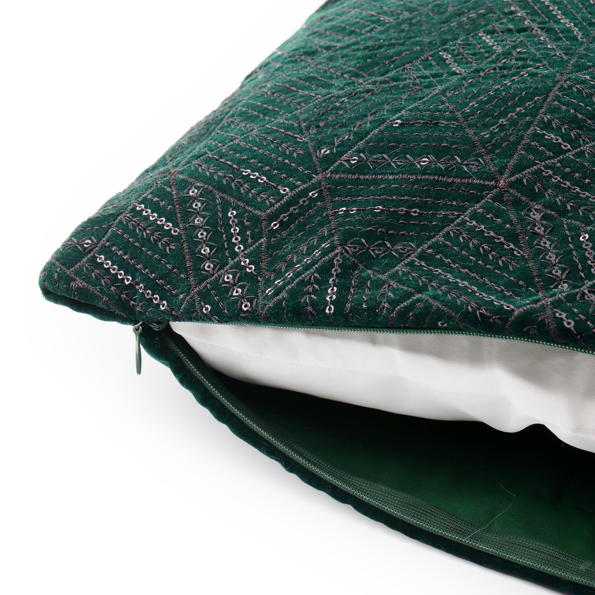 Add a touch of elegance and artistry to your home with the Mystic Stitch cushion cover. Crafted from premium velvet, this cover features an intricate embroidered and sequined design, creating a rich texture and luxurious appeal. The deep hues and detailed craftsmanship make it a perfect addition to both modern and classic interiors.