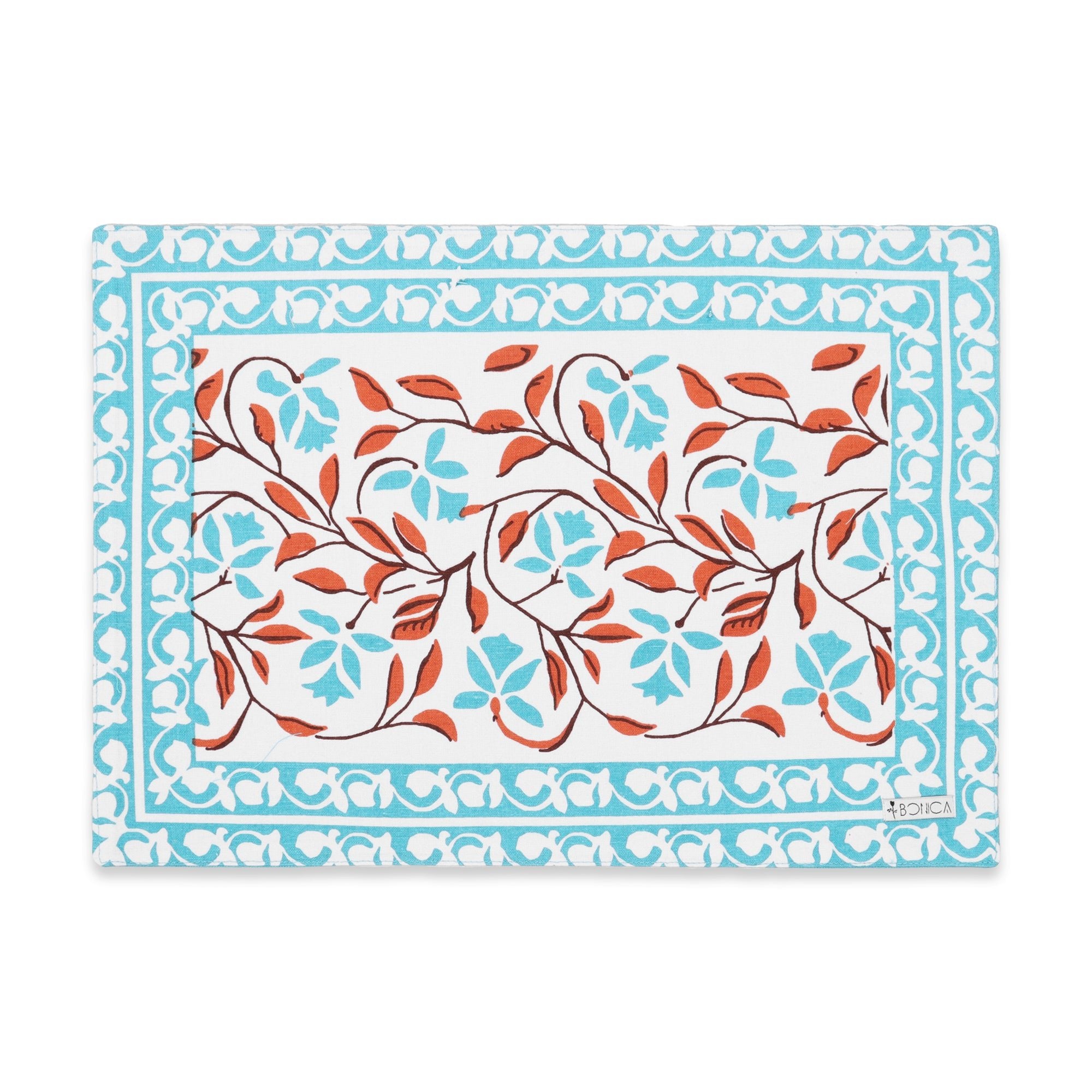 Bring a touch of rustic charm to your table with the Terracotta Vine table placemat. Featuring a beautiful intertwining vine design in warm terracotta and refreshing aqua hues, this runner adds a perfect blend of elegance and vibrancy to any setting. Crafted from high-quality fabric, it's ideal for both casual dining and special occasions, effortlessly enhancing your home decor.