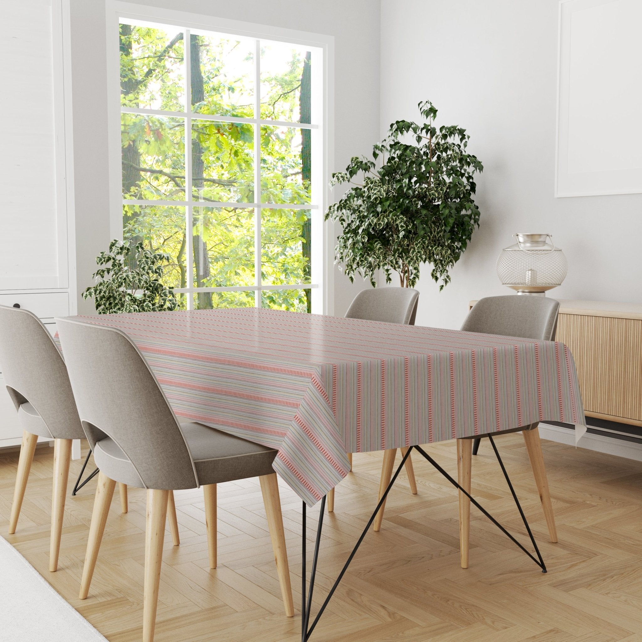 Brighten up your dining space with the VivaStripe Table Cover, a perfect blend of color and charm. Featuring a lively striped pattern with a mix of warm and cool tones, this cover adds a cheerful touch to any table setting. Crafted from high-quality fabric, it offers durability and style, making it ideal for everyday use or special gatherings.